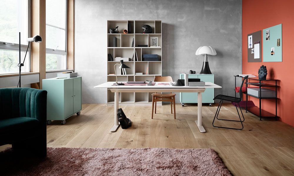Mörike dichtete dem Frühling sein blaues Band an, wir erweitern das Farbspektrum um weitere starke Farben: Unser Lieblingsschreibtisch HiLow von Montana kommt neuerdings unter anderem in warmem bordeaux ins Büro!