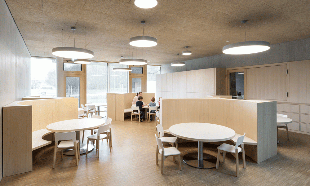 Spielen, Toben, Kochen, sich begegnen und unbeschwert Kind sein – hier ist alles möglich. Ideen wie die Treppe zur Rutsche werden zu lassen und einem Tagtraum gleich eine scheinbar freischwebende Holzkonstruktion, die zum Verweilen mit Ausblick einlädt… man kann vermuten, dass es abends eines extra Kontrollgangs der Erzieher/innen bedarf, um letzte erwachsene Kinder aus dem Haus zu jagen.