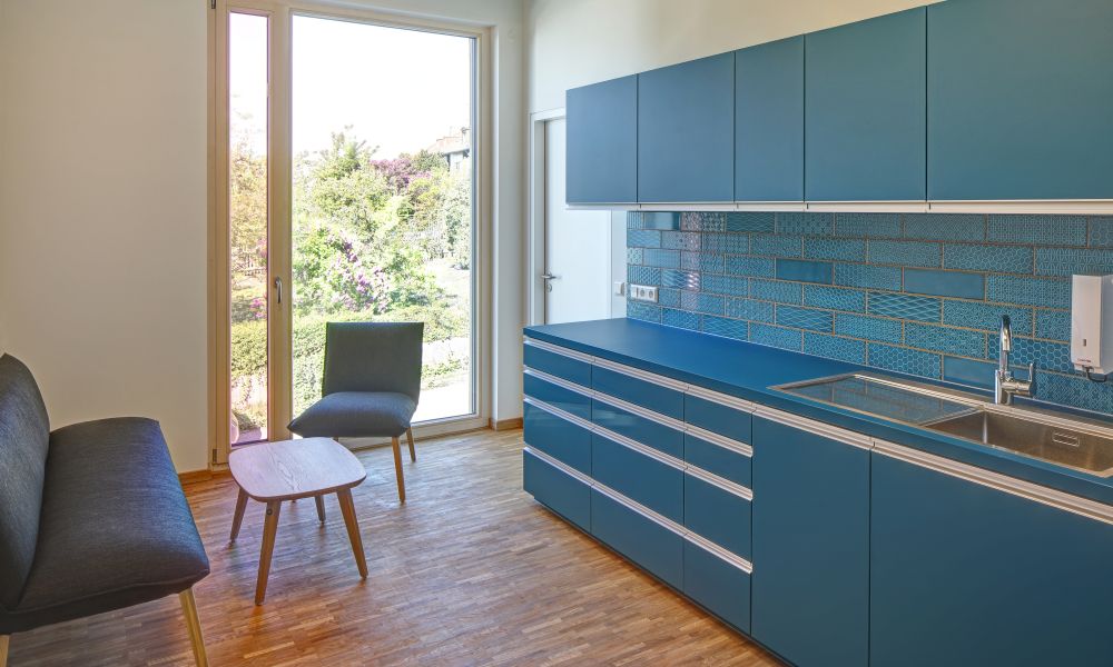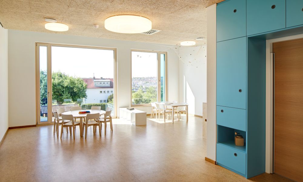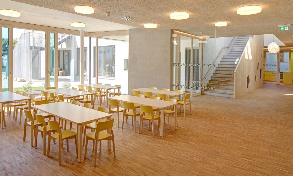 Die Möblierung folgt dem ästhetischen Anspruch des Gebäudes. Trotzdem ist sie maximal robust und trotzt allen kleinen und größeren Wirbelwinden von 1-6 Jahren.