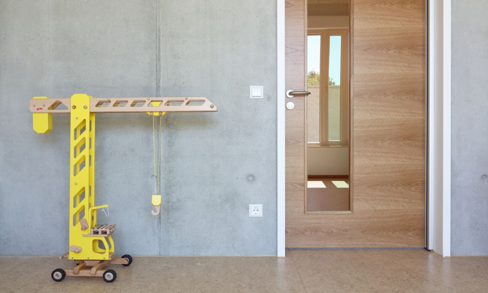 Die klaren Linien des Hauses werden durch warme Materialien und Farben ergänzt. Den Bauherren war wichtig, Draußen und Drinnen auf bestmögliche Weise zu verbinden und den Kindern das Toben und sich Ausprobieren ebenso zu ermöglichen wie das Ruhen und Zurückziehen.